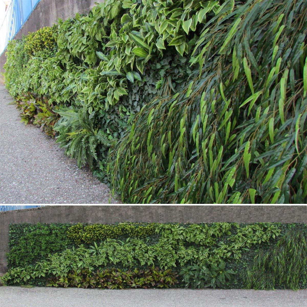 Vertikālā ainava ar mākslīgiem augiem no VERDEVIP (Itālija) lieliski izskatās restorāna, viesnīcas, salona vai veikala interjerā. Neprasa aprūpi, nenomirs, un galvenais vizuāli neatšķirams no dzīvas zaļas sienas. Vēl viena priekšrocība ir tā, ka šādu ainavu veidošanu var drosmīgi izmantot ārā, jo mūsu klimatā ir ļoti grūti izveidot vertikālo ainavu ar dzīviem augiem.